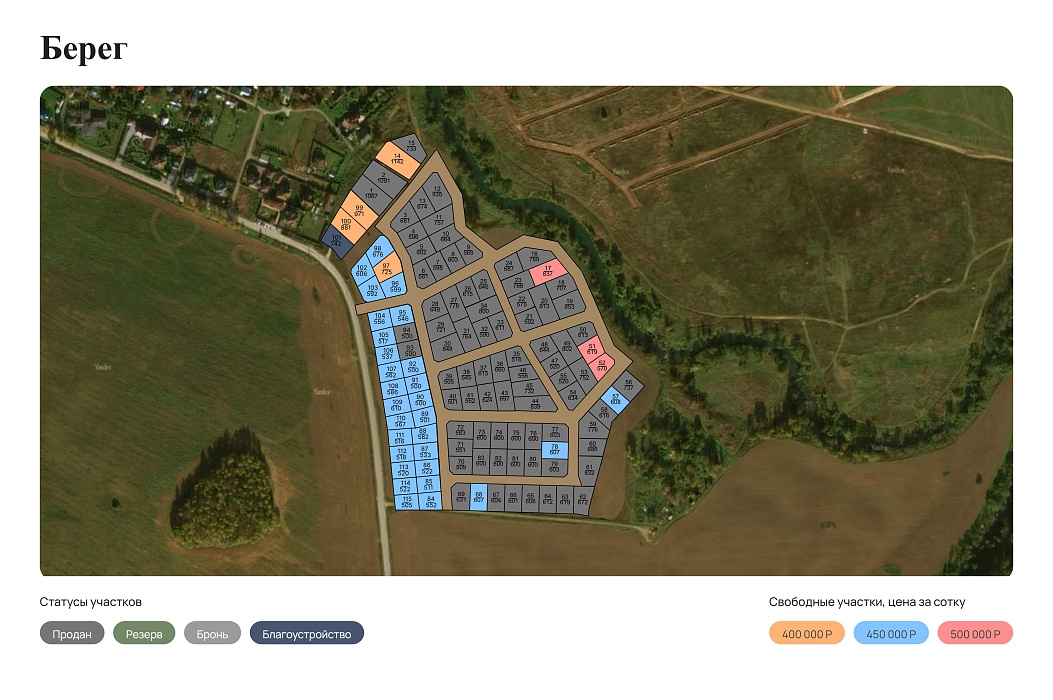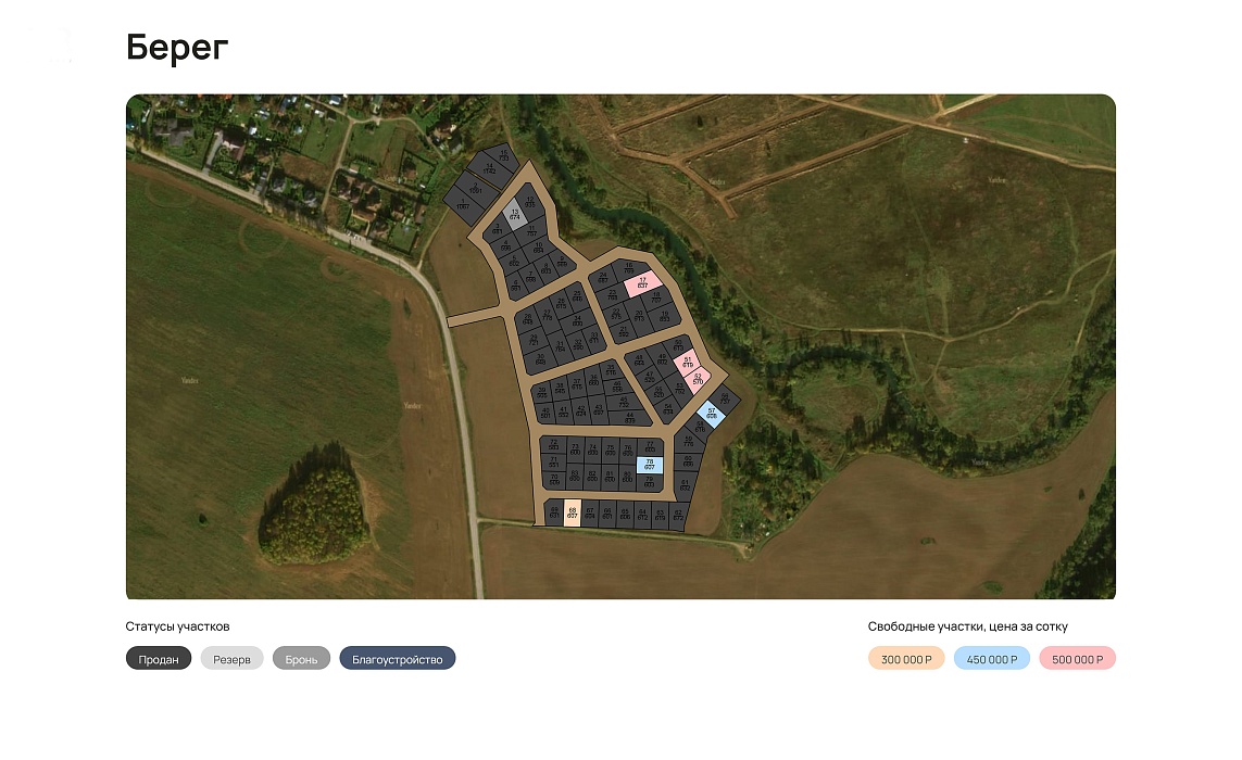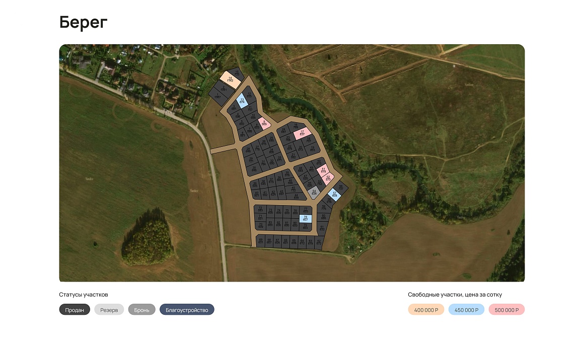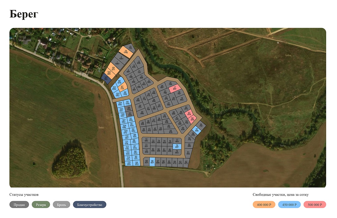 Посёлок Берег расположен в 25 км от МКАД, заезд возможен как с Каширского, так и с Симферопольского шоссе. Это замечательное место для постоянного проживания, обладающее всей необходимой инфраструктурой. Для каждого участка ИЖС предусмотрена возможность подключения к магистральному газу, а также выделено 15 кВт электричества. По границе поселка растет смешанный лес. В непосредственной близости находятся микрорайон Востряково, Новое Домодедово и город Домодедово, что предоставляет возможность пользоваться их развитой инфраструктурой.